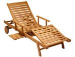 This teak chaise is not only comfortable, it adapts to your every whim! The arms and back of this teak chaise are adjustable and will fold down. The leg section props up so you can enjoy a good book with ease. The rubber wheels make it easy to move so that you can be sure that you are facing the sun at the right angle! Finally, the teak drink tray slides under the chair if you are finished with your beverage.